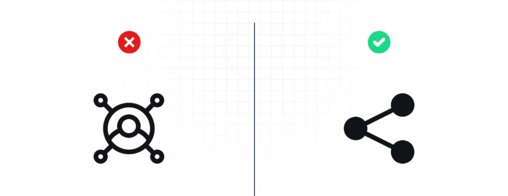 Según la imagen, los iconos que carecen de claridad fallan en su función principal: ser intuitivos. Por ejemplo, un icono de “compartir” no necesita incluir elementos decorativos o complejos; bastan unas líneas simples que representen una conexión entre nodos para transmitir su significado. Este enfoque no solo hace que el icono sea más fácil de entender, sino que también reduce la carga visual en la interfaz, mejorando la usabilidad.